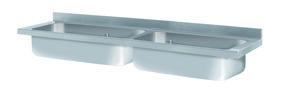 Encimera de profundidad 700 mm con fregaderos, peto posterior de 100 mm de altura y frontal de 50 mm de altura. Totalmente soldado.