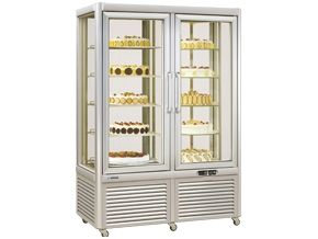 Armario expositor de conservación con una temperatura de trabajo regulable de +4 °C a +10 °C.